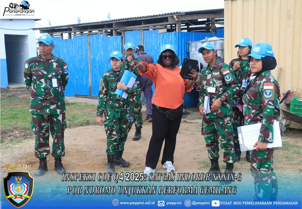 Suasana POB Ndromo terasa penuh semangat pada hari Senin-Selasa (08-09 Desember 2025) saat inspeksi COE periode Kuartal 4 Tahun 2025 dimulai tepat jam 08.30 pagi sampai selesai. Tim COE yang dipimpin Mr. Moh Osana turun langsung ke lapangan, didampingi oleh Mayor Inf Bagus, Mayor Cba Firman, Mayor Arh Fahri, dan Mayor Psk Gigih dari Indo RDB. Seluruh personel Ndromo Camp INDORDB XXXIX-G MONUSCO juga siap dengan antusiasme untuk menunjukkan hasil kerja mereka selama ini.