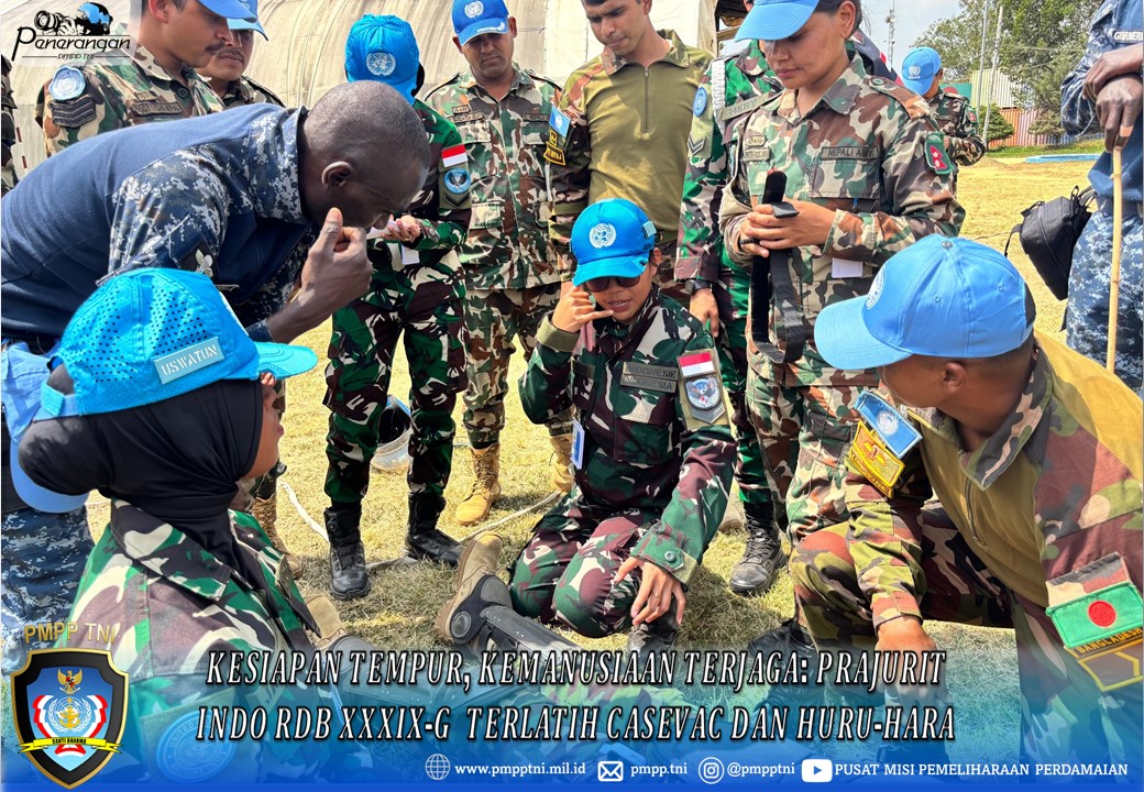 Kegiatan ini diakhiri dengan ujian teori materi Casevac dan PHH, diikuti dengan ujian praktek lapangan. Personel Satgas mempraktekkan teknik evakuasi korban luka dan pengendalian huru-hara dengan menggunakan Riot Control Kit. Kegiatan ini bertujuan untuk meningkatkan kesiapan dan kemampuan personel dalam menghadapi situasi darurat.