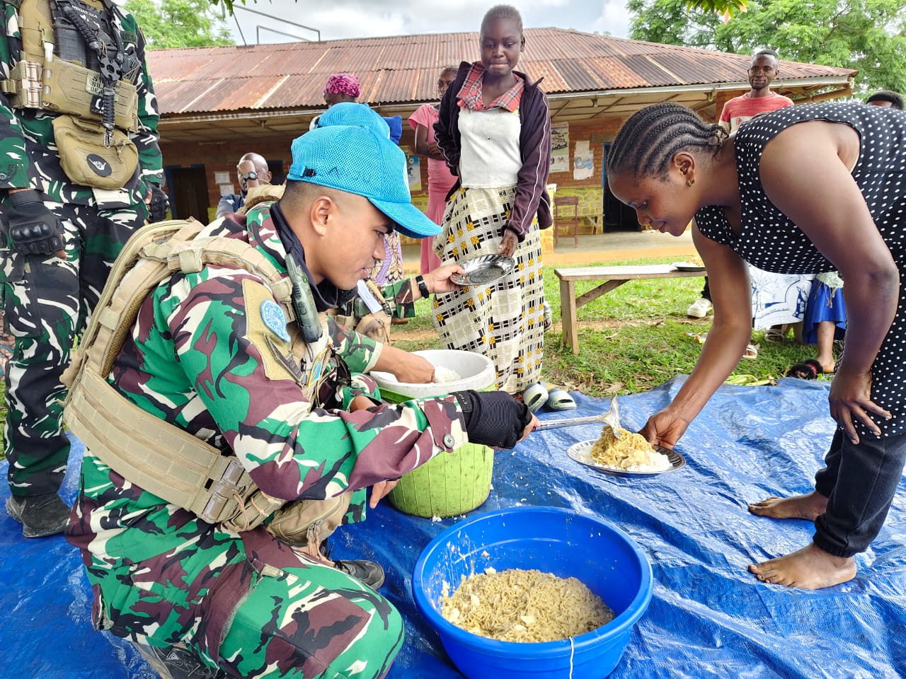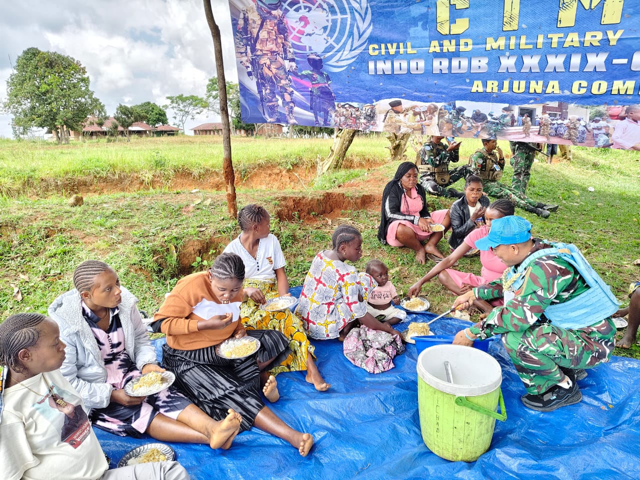Suasana kebersamaan semakin kental saat kegiatan berlanjut dengan sesi memasak dan makan bersama antara personel SATGAS INDORDB XXXIX-G MONUSCO dan penduduk setempat. Interaksi hangat ini menjadi sarana efektif untuk mempererat hubungan emosional dan membangun kepercayaan di tengah masyarakat. Kehadiran tim disambut dengan antusiasme yang luar biasa, di mana Pastor dan warga menyampaikan apresiasi mendalam atas perhatian serta dukungan nyata yang diberikan oleh para personel melalui kegiatan sosial ini.