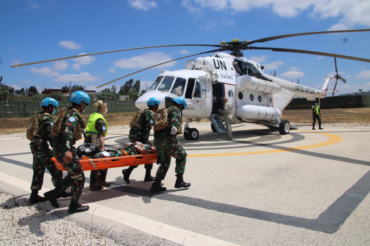 Demikian skenario latihan bersama personel tim kesehatan lapangan atau dikenal dengan sebutan Force Medical Team (FMT) yang tergabung dalam Satuan Tugas (Satgas) Indobatt XXIII-O UNIFIL saat melaksanakan latihan bersama dengan tim evakuasi medis udara Perancis Aero Medical Evacuation Team (AMET) bertempat di Husada Level I Hospital adchit Al Qusyr Lebanon Selatan, Kamis (22/07/2021).