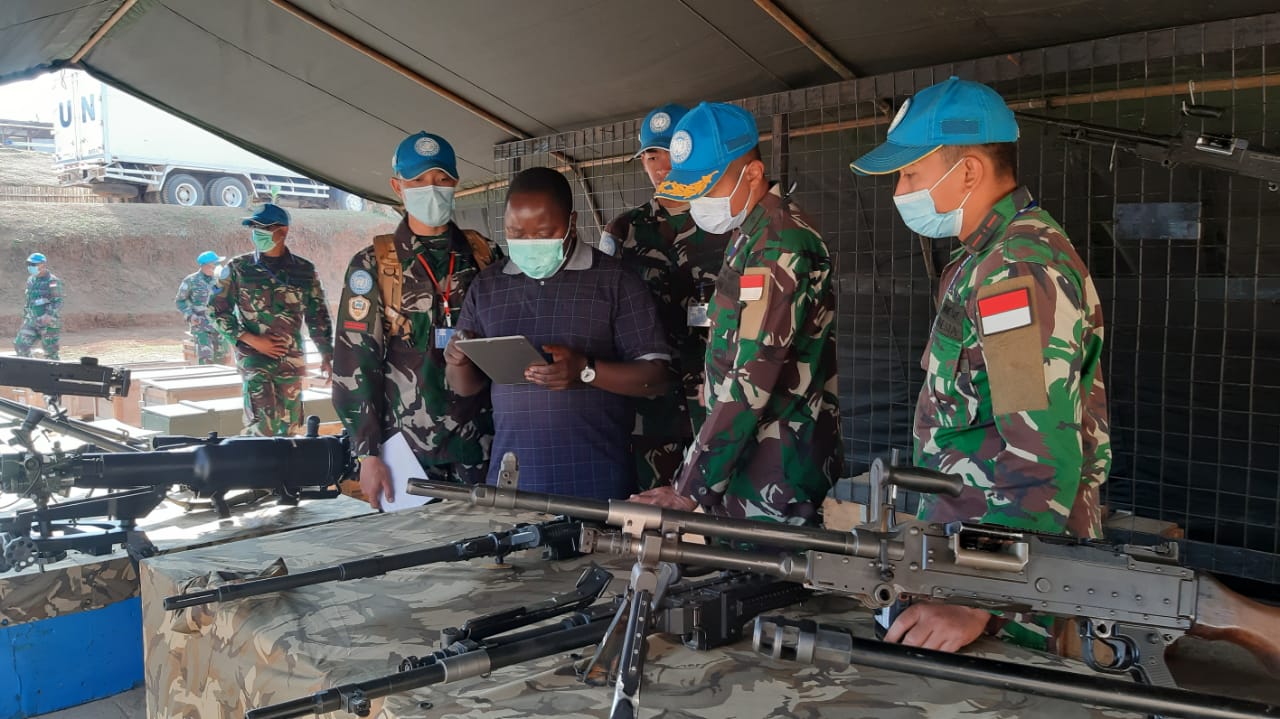 Walungu. Rombongan Tim COE (Contingent Owned Equipment) MONUSCO (Mission de I’Organisation de republic des Nation Unies Pour la Stabilisation en Republique Democratique du Congo) melaksanakan pemeriksaan kesiapan peralatan operasional terhadap materiil, perlengkapan, persenjataan dan kendaraan Satgas Indo RDB XXXIX-C yang bertempat di Soedirman Camp, Walungu DRC. Rabu (28/7).
