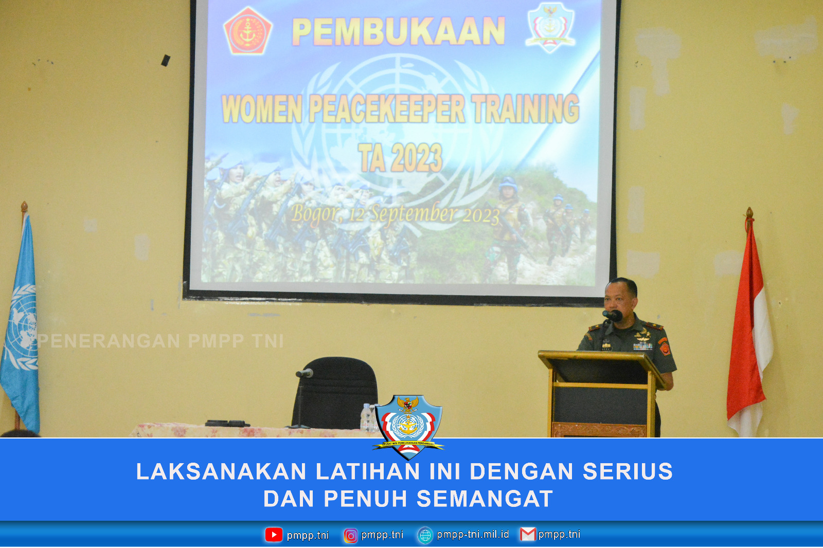 WOMEN PEACEKEEPER TRAINING (WPT) 2023 secara resmi dibuka oleh Komandan PMPP TNI yang diwakili Wadan PMPP TNI Brigjen TNI Heru Langlang Buana, S.IP., M.Si, di Home Of Peacekeeper PMPP TNI, Sentul, Bogor. (12/9/23)