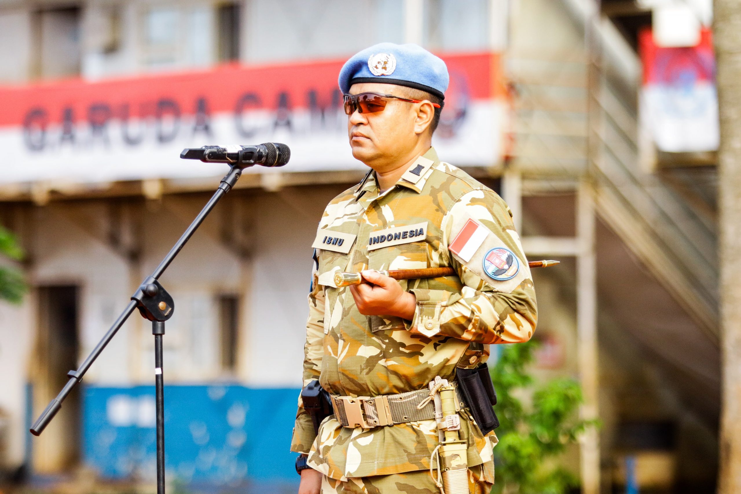 Pada peringatan hari jadi TNI ke – 79 Satuan Tugas kompi Zeni TNI Kontingen Garuda XXXVII-J Minusca melaksanakan upacara di lapangan Garuda Indonesian Engineering Company Camp. Bangui, Sabtu (05/10/2024).