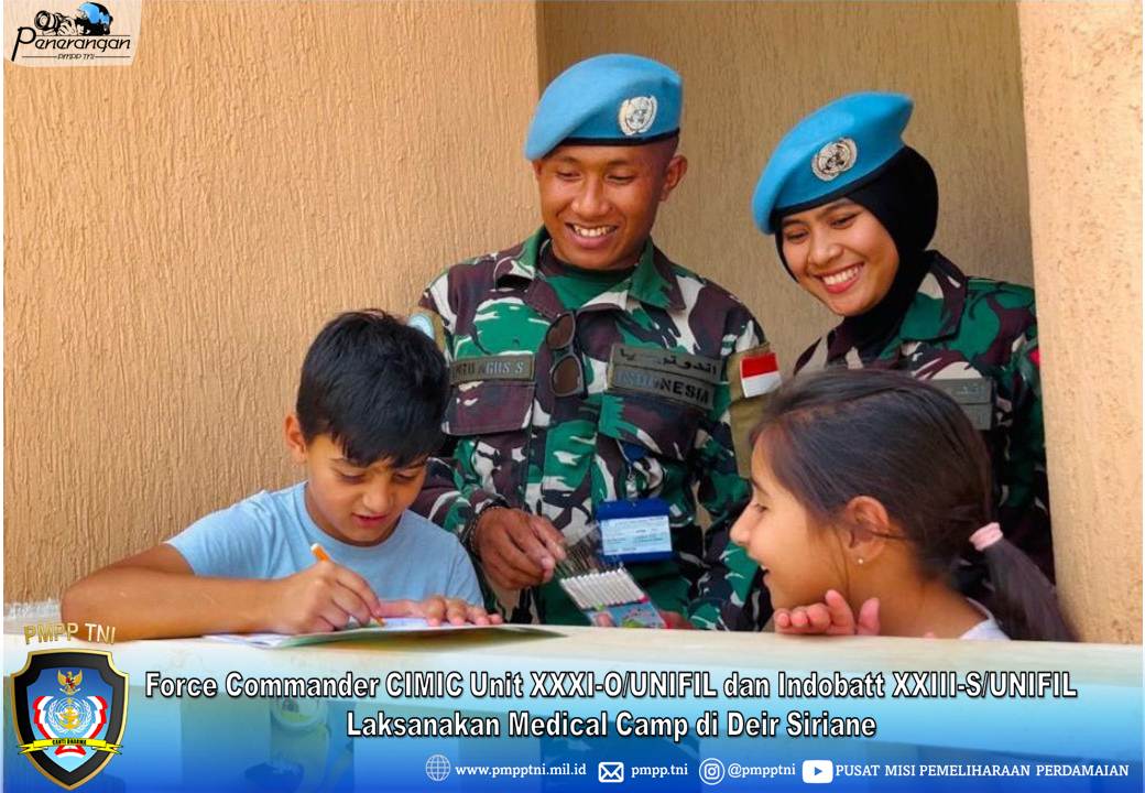 Kamis, 14 Agustus 2025, FCCU bersama Indobatt XXIII-S/UNIFIL melaksanakan Medical Camp di Deir Siriane. Kegiatan ini memberikan layanan kesehatan dasar serta konsultasi medis bagi masyarakat setempat, dengan tujuan meningkatkan akses kesehatan publik sekaligus mempererat hubungan antara pasukan penjaga perdamaian UNIFIL dan warga. Inisiatif ini mencerminkan komitmen UNIFIL terhadap bantuan kemanusiaan serta semangat kerja sama antara kontingen militer dan masyarakat sipil di Lebanon Selatan.
