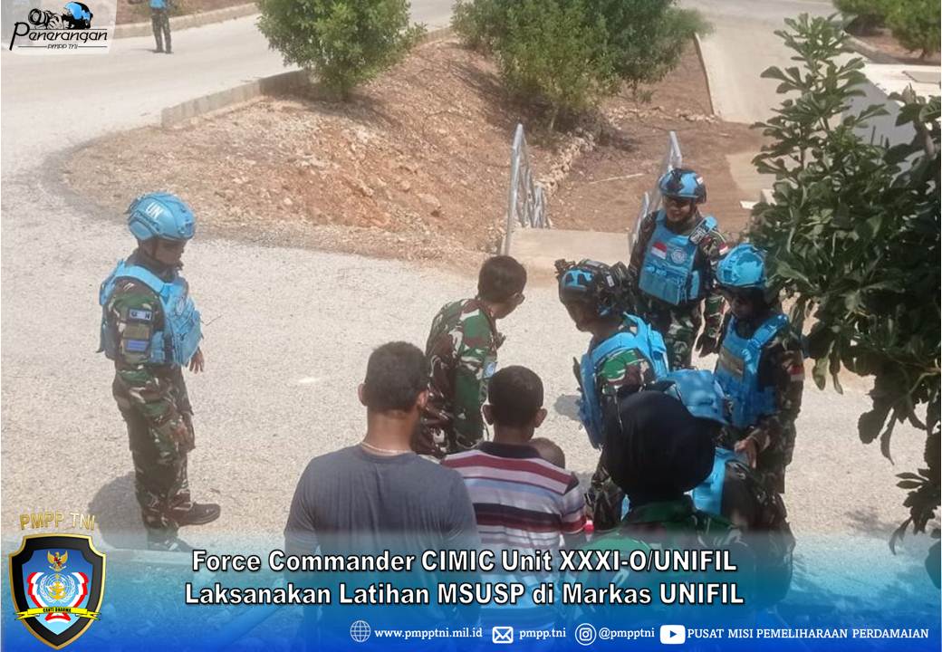 Rabu, 13 Agustus 2025, FCCU berpartisipasi dalam latihan Military Support for UNIFIL Security Plan (MSUSP) bersama FHQSU, Rumah Sakit Level 2, dan MCOU. Latihan ini bertempat di Green Hill, Markas UNIFIL Naqoura, dengan tujuan meningkatkan kesiapan, memperkuat koordinasi, serta menguji interoperabilitas antar satuan UNIFIL. Keterlibatan FCCU menegaskan peran penting CIMIC dalam memastikan kesiapan operasional yang tidak hanya ditopang oleh aspek militer, tetapi juga melalui kerja sama dengan komponen sipil.