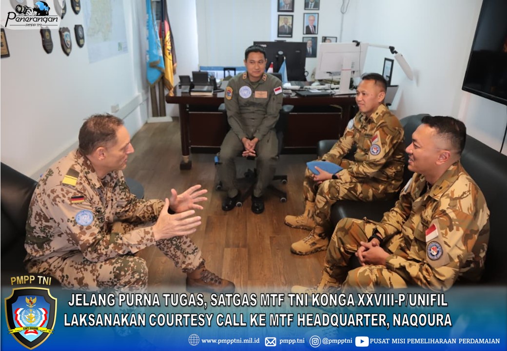 Selain melaksanakan Courtesy Call, agenda ini juga mencakup diskusi terkait pencapaian operasional dan tantangan yang dihadapi selama setahun terakhir dan pertukaran cinderamata sebagai simbol persahabatan dan kerja sama maritim internasional. Kegiatan berlangsung dengan khidmat dan lancar ini menandai satu tahapan akhir dari perjalanan panjang Satgas MTF TNI Konga XXVIII-P sebelum nantinya akan secara resmi dilepas oleh Force Commander UNIFIL pada Senin (05/01) mendatang dan rencananya akan tiba di tanah air pada medio Februari 2026.