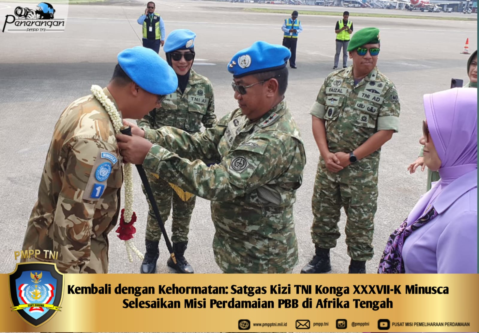 Sebanyak 240 prajurit TNI yang tergabung dalam Satgas tersebut, dipimpin oleh Letkol Czi M. Imvan Ibrahim, S.Sos., M.Han., telah menyelesaikan penugasan di Republik Afrika Tengah dalam misi pemeliharaan perdamaian dibawah bendera Perserikatan Bangsa-Bangsa (PBB). Setibanya di Tanah Air, para prajurit Garuda disambut dengan pengalungan bunga oleh Komandan PMPP TNI, dilanjutkan sujud syukur bersama sebagai ungkapan rasa syukur atas keberhasilan menjalankan misi dan kembali ke Tanah Air dengan selamat.