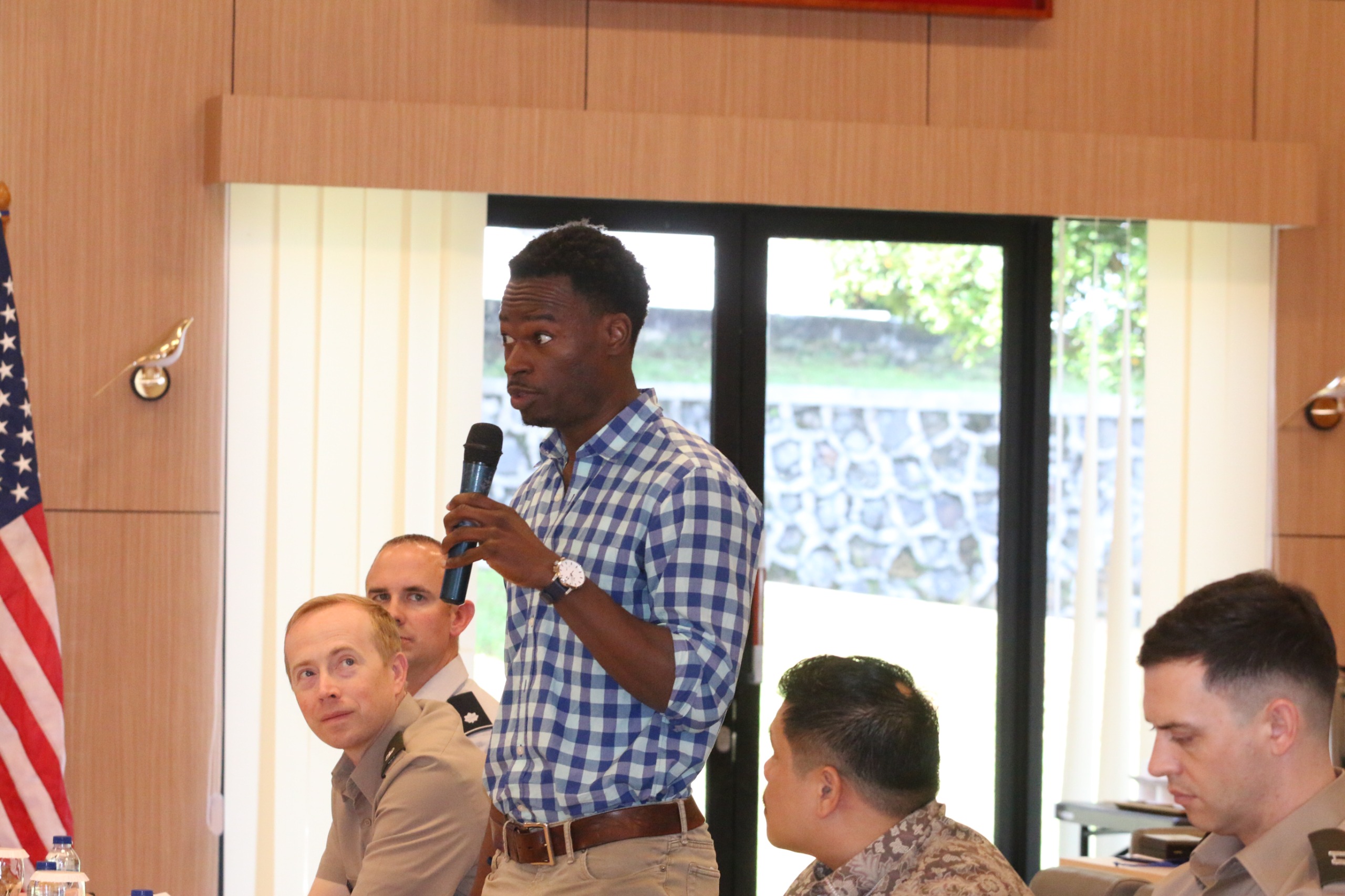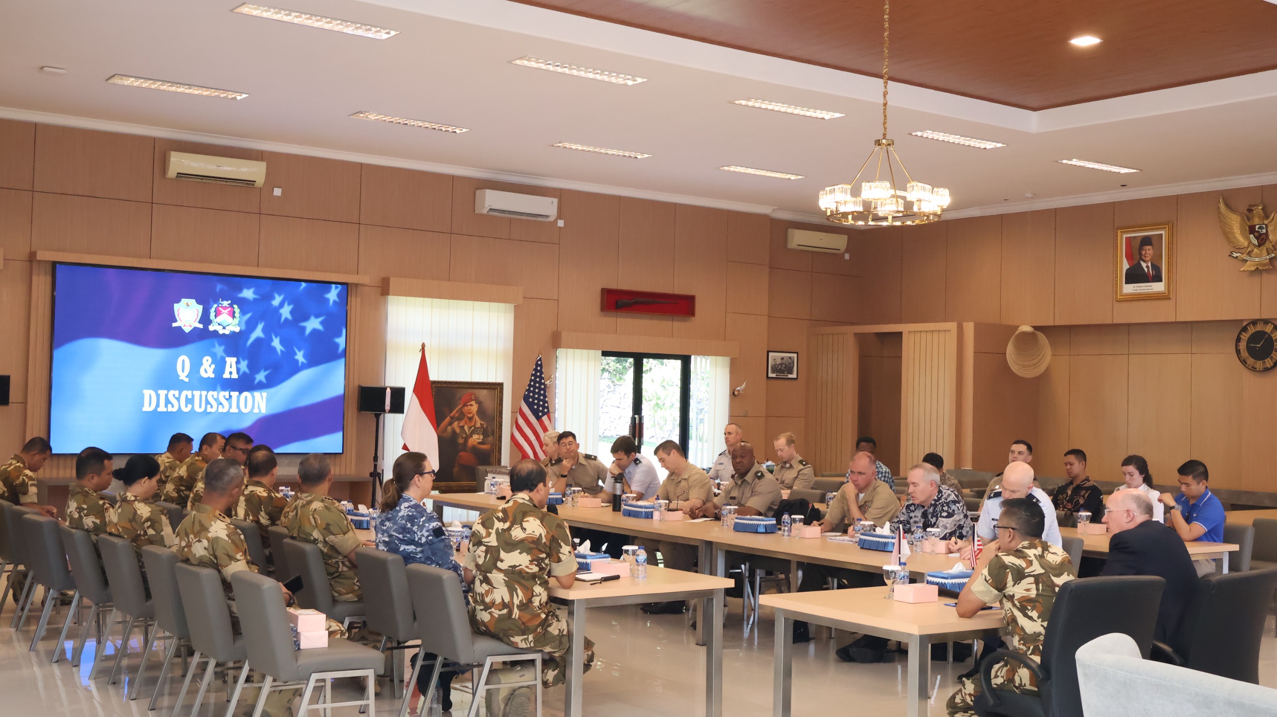 Delegasi yang dipimpin oleh Dr. Zachary M. Abuza selaku (โ Profesor Strategi dan Kebijakan US National War College di dampingi Kolonel USAF Jonathon Waller (Instruktur Studi Keamanan US National War College) bersama 15 mahasiswa, dalam diskusi singkat, Ketua delegasi mengapresiasi profesionalisme TNI dan menilai Indonesia sebagai salah satu aktor penting dalam upaya perdamaian di kawasan.