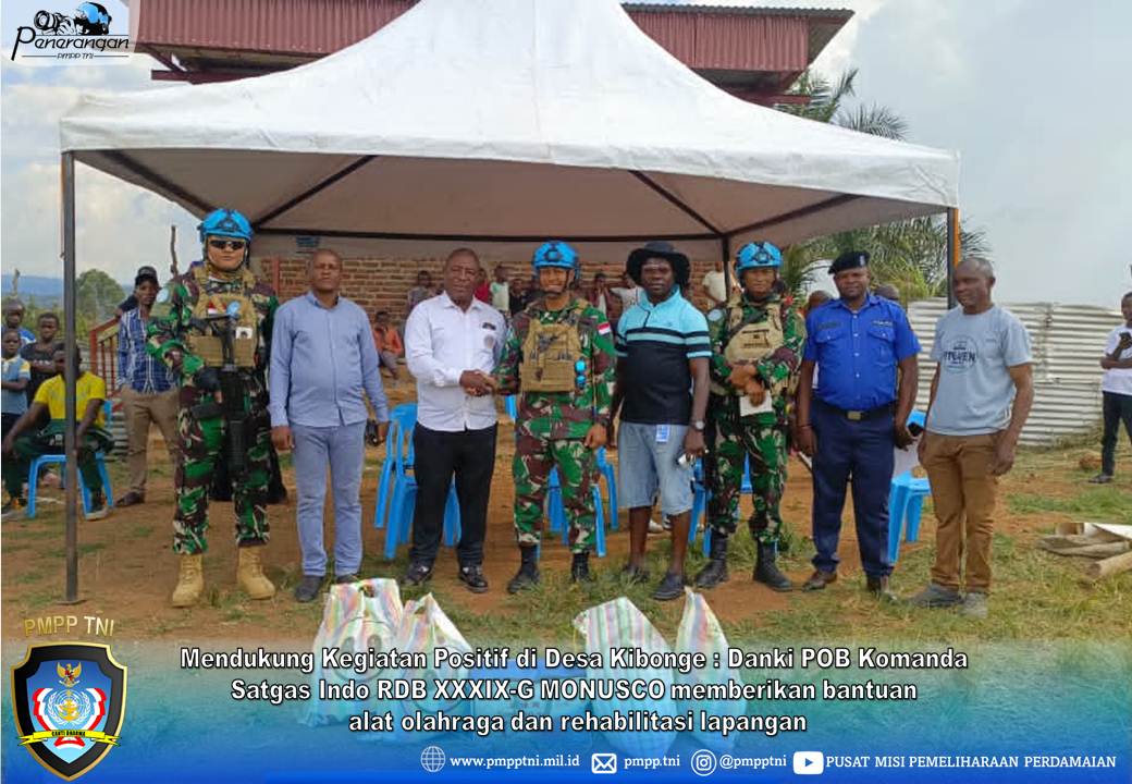 Komanda, Democratic Republic of Congo – Pada hari Selasa, 21 Oktober 2025 pukul 15.30 LT, Komandan Kompi B Komanda Indo RDB XXXIX-G MONUSCO, Mayor Inf Depari beserta beberapa prajurit Komanda, melaksanakan peresmian rehabilitasi lapangan sepak bola di Desa Kibonge serta memberikan bantuan peralatan olahraga kepada masyarakat setempat.