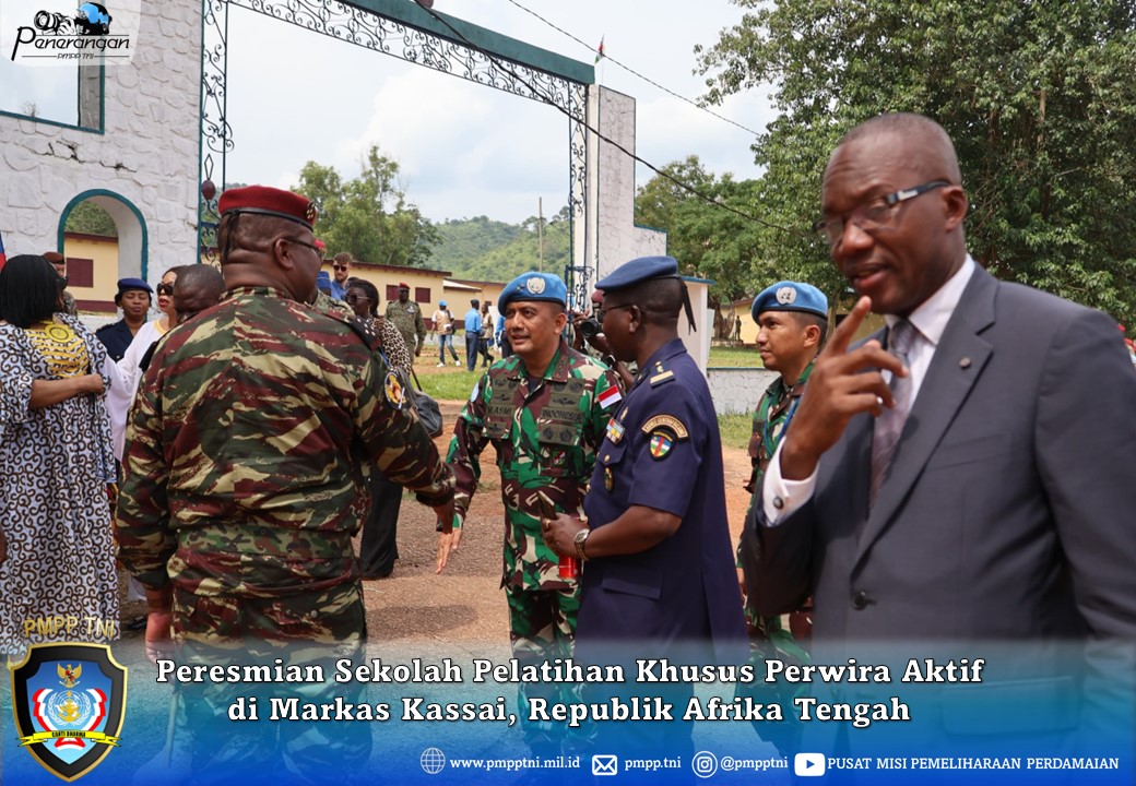Deputy Force Commander MINUSCA, Mayjen TNI Maychel Asmi, P.S.C., S.E., M.Han., mewakili Force Commander dalam menghadiri acara peresmian Sekolah Pelatihan Khusus Perwira Aktif yang berlokasi di Markas Militer Kassai, Republik Afrika Tengah.