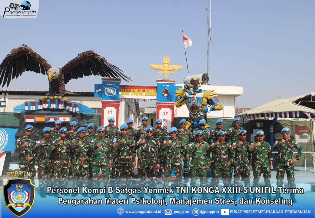 Personel Kompi B Satgas Batalyon Mekanis TNI Kontingen Garuda XXIII-S UNIFIL menerima pengarahan dan pemberian materi psikologi, teknik mengatasi stres, serta konseling di UNP 7-3.