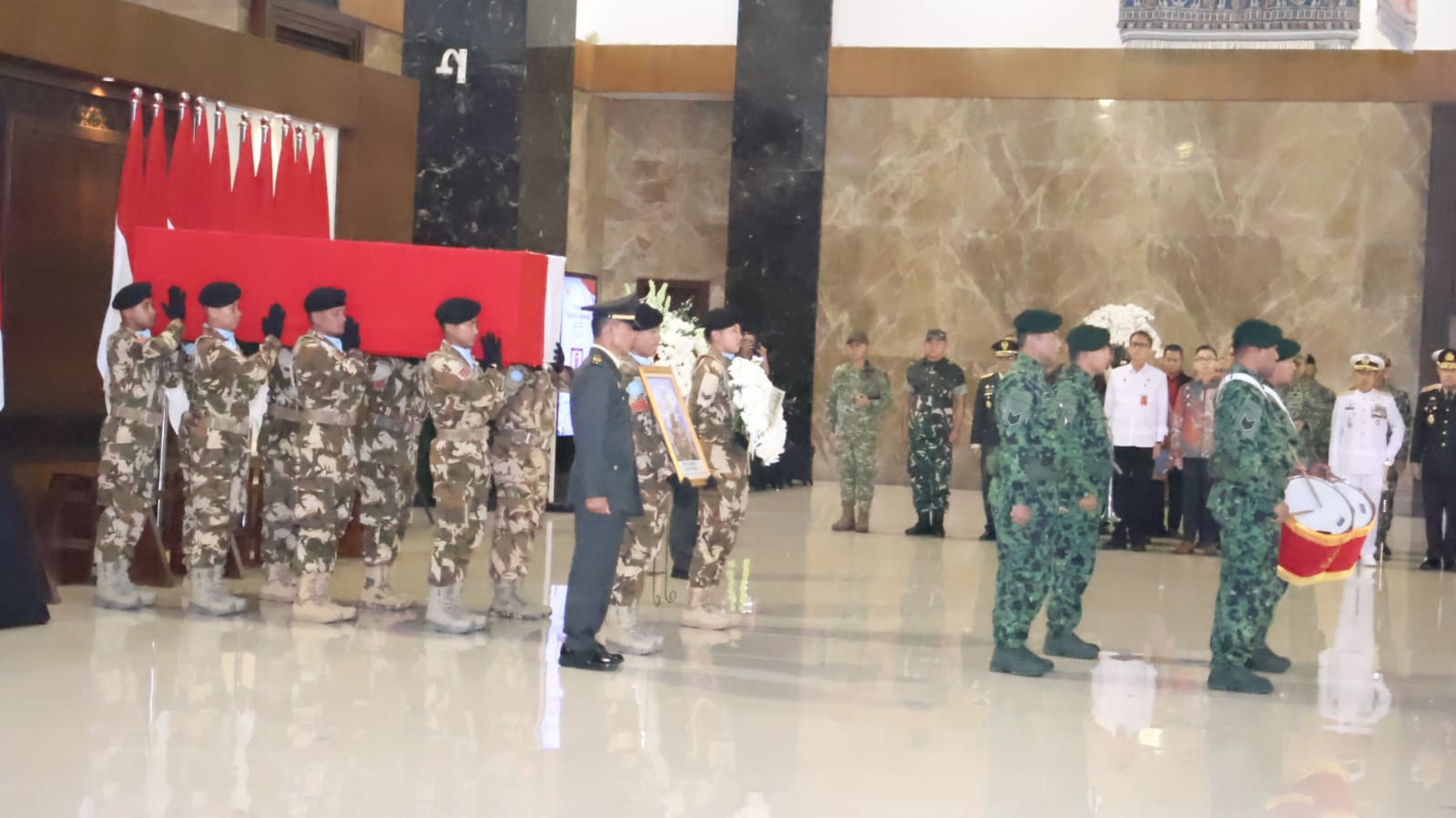 Pusat Misi Pemeliharaan Perdamaian TNI (PMPP TNI) melaksanakan upacara pemberangkatan jenazah almarhum Kopda Anumerta Rico Pramudia, personel Satgas Yonmek TNI Konga XXIII-S UNIFIL, di Apron VIP Bandara Internasional Soekarno-Hatta.