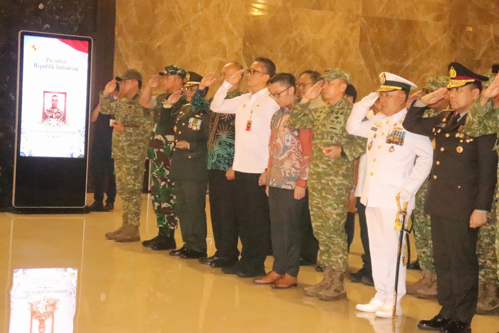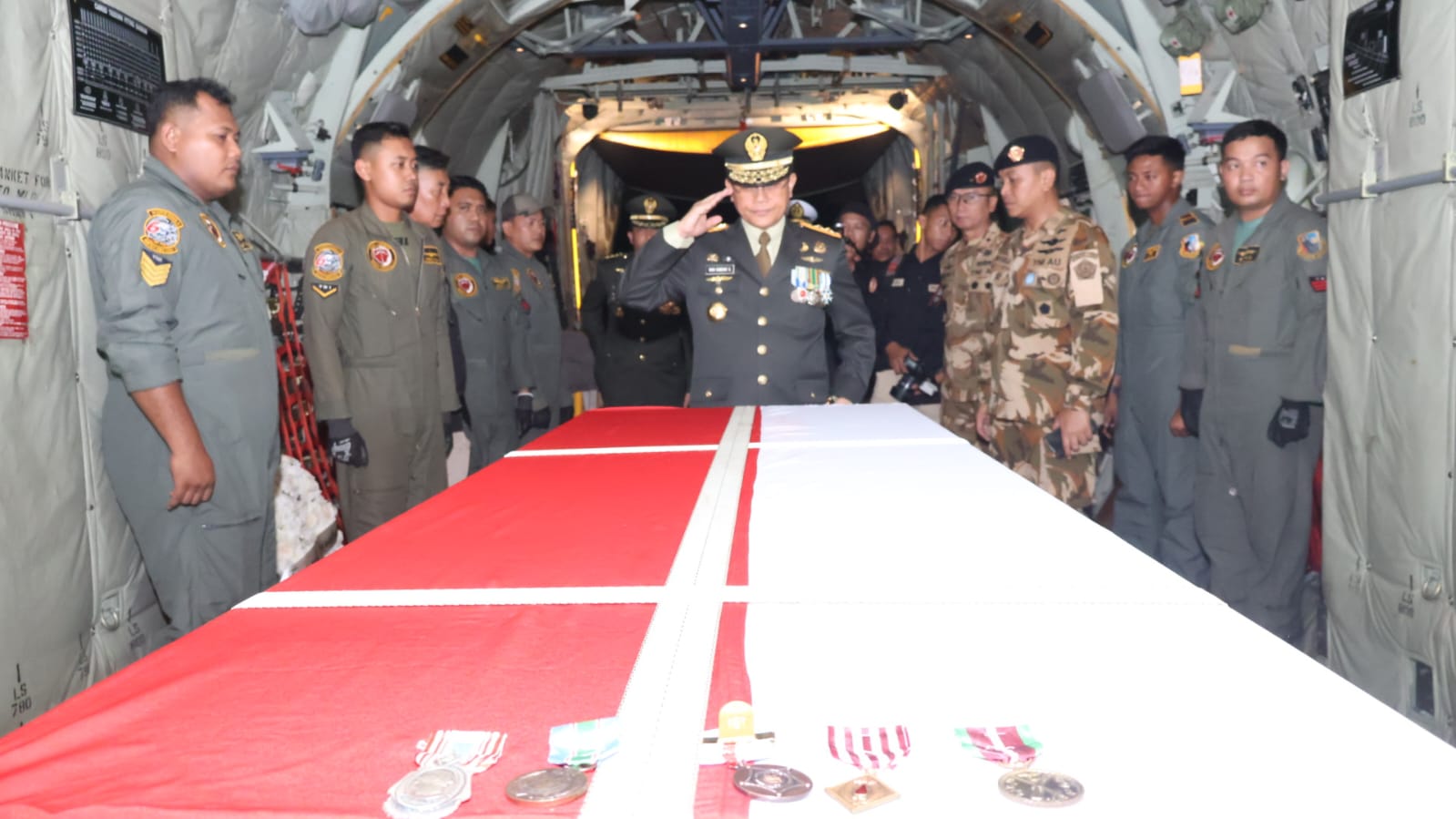 Sebelumnya Panglima TNI Jenderal TNI Agus Subiyanto, S.E., M.Si., beserta jajaran turut hadir untuk memberikan penghormatan terakhir di VIP room Bandara Soekarno Hatta