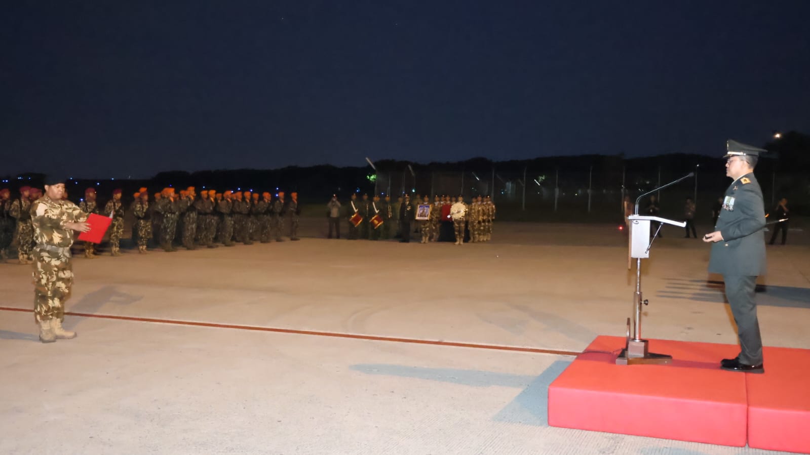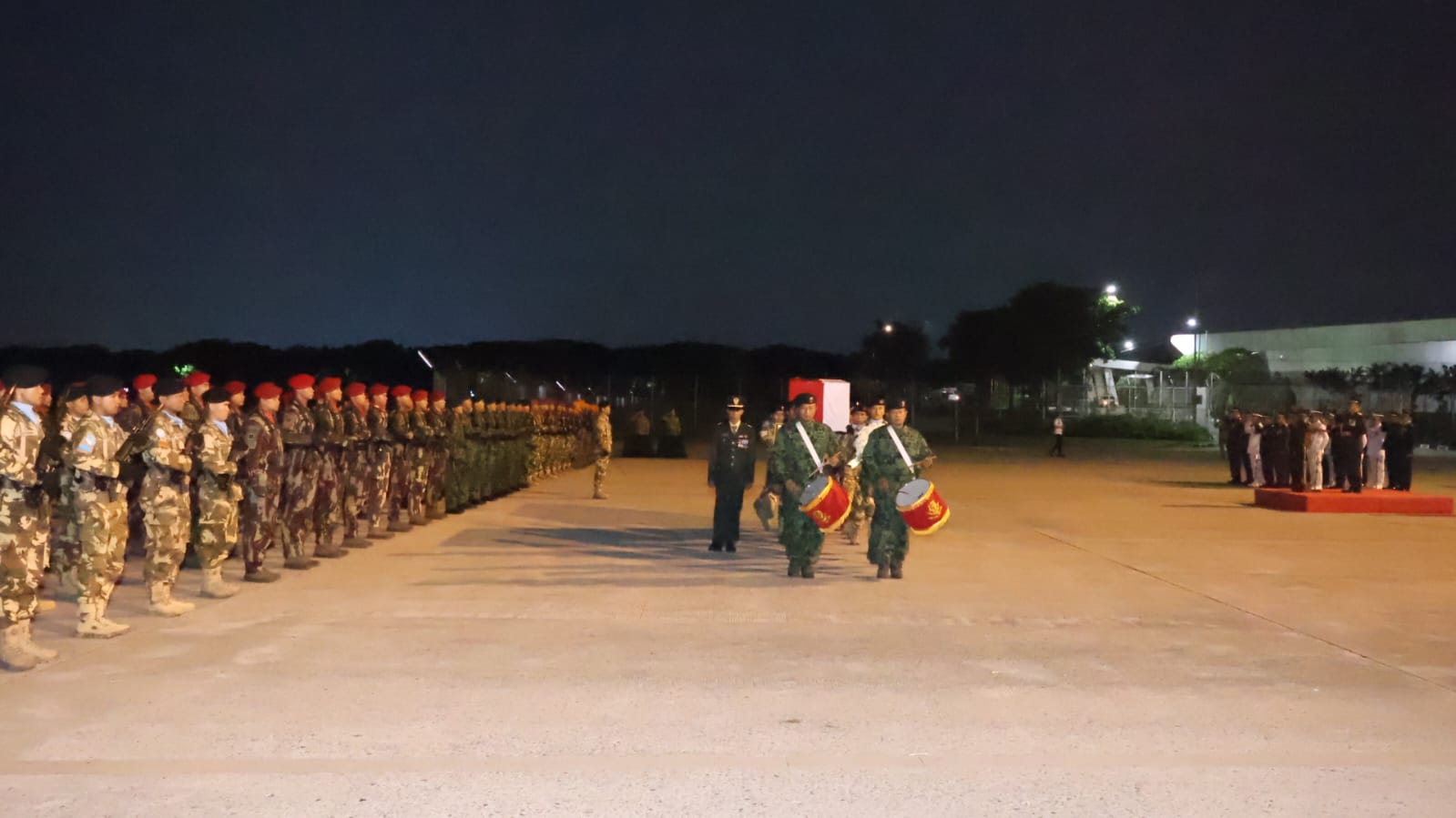 Upacara dilaksanakan secara militer dan berlangsung khidmat sebagai bentuk penghormatan terakhir kepada prajurit yang gugur dalam menjalankan tugas misi perdamaian dunia di Lebanon.