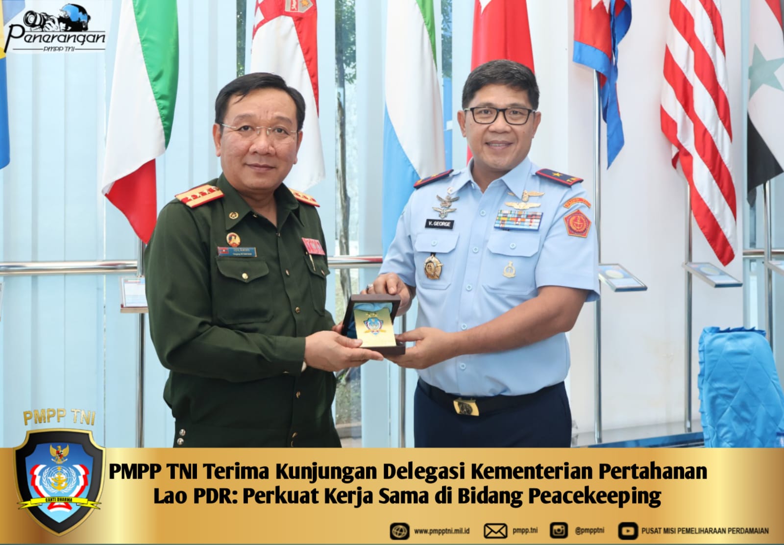 Komandan Pusat Misi Pemeliharaan Perdamaian (PMPP) TNI, Mayjen TNI Taufik Budi Santoso, S.Hub.Int., M.H.I., yang diwakili oleh Wakil Komandan PMPP TNI, Marsma TNI Victor R.C.J. George, S.I.P., MPACS, MMA., beserta para Pejabat Utama PMPP TNI, menerima kunjungan Director General of Foreign Relations Department Ministry of National Defence Lao PDR, Kolonel Vongxay Inthakam, di Mako PMPP TNI, Sentul, Bogor, pada 22 Oktober 2025.