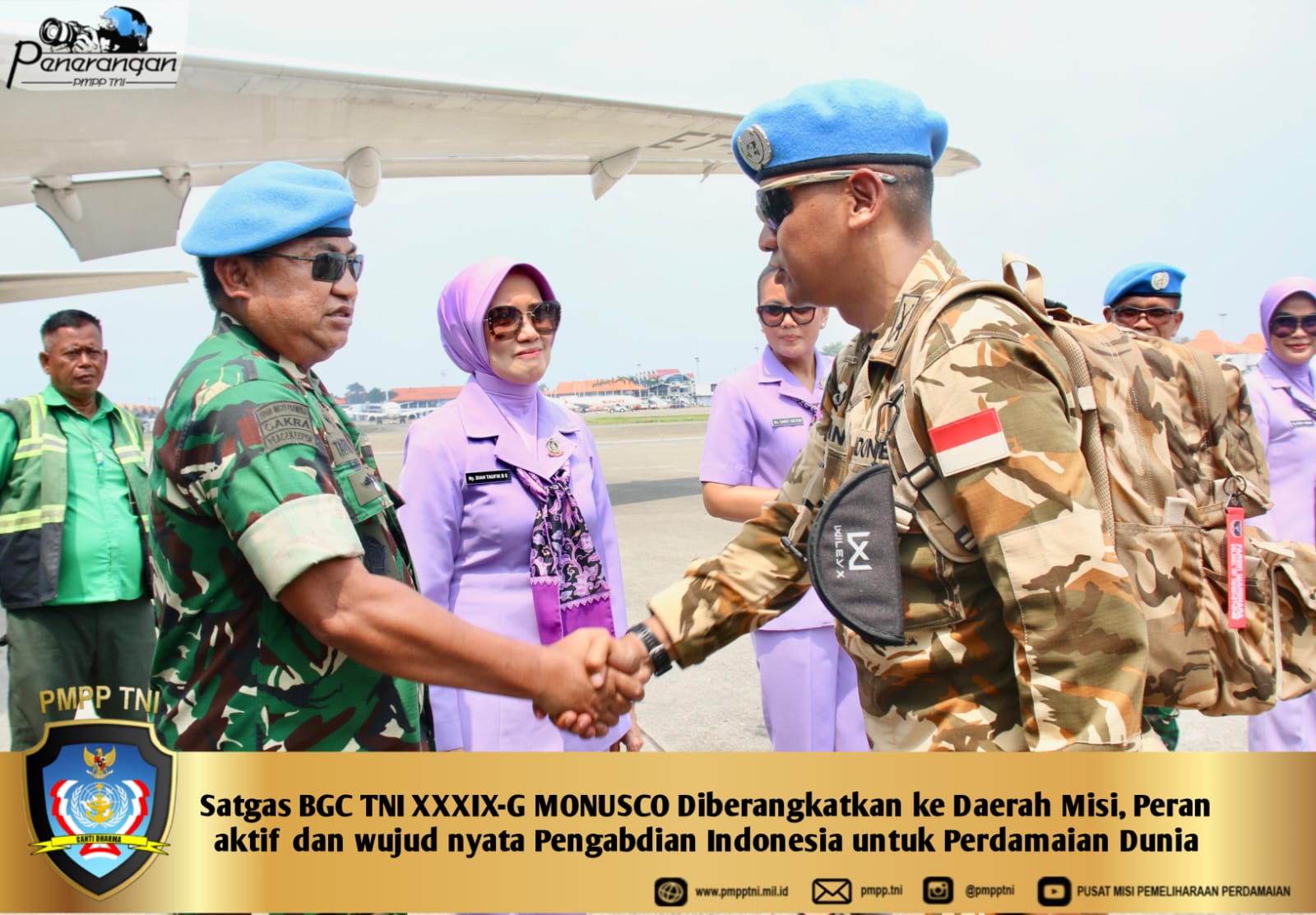 Pusat Misi Pemeliharaan Perdamaian (PMPP) TNI kembali mencatatkan langkah penting dalam kontribusi Indonesia terhadap perdamaian dunia. Komandan PMPP TNI, Mayjen TNI Taufik Budi Santoso, S.Hub.Int., M.H.I., memimpin langsung acara pemberangkatan Satgas Batalyon Gerak Cepat (BGC) TNI Kontingen Garuda XXXIX-G MONUSCO Tahun Anggaran 2025, yang digelar di Bandara SoekarnoโHatta, Tangerang, pada Minggu (12/10/2025).