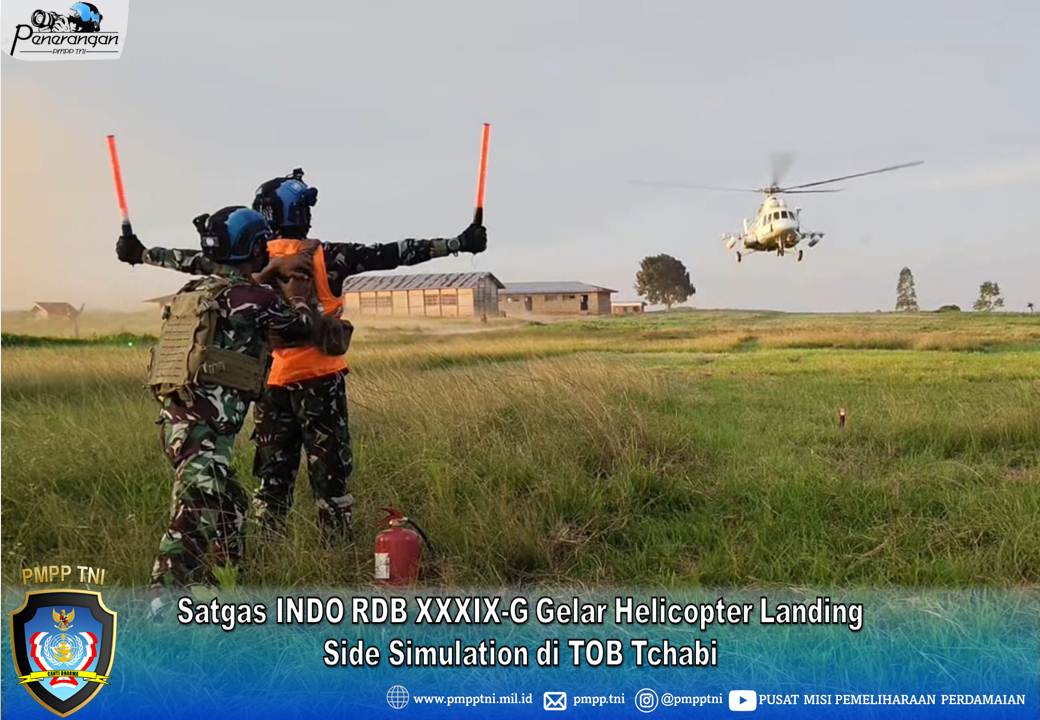 Kompi A TOB Tchabi dari INDORDB XXXIX-G melaksanakan Simulasi pengamanan Helikopter Landing Site (HLS) di Tchabi Center. Kegiatan ini merupakan bagian dari upaya berkelanjutan untuk menjaga keamanan dan ketertiban di wilayah tersebut. Kegiatan dipimpin oleh Mayor Pas Pandu, dengan melibatkan 11 anggota INDO RDB, seorang anggota FARDC (Kopral Dounglas), dan seorang perwakilan dari masyarakat lokal (Tuan Claude). Fokus utama kegiatan ini pemantapan kegiatan simulasi serta memastikan keamanan area HLS di Tchabi Center, yang terletak 1 km di barat daya TOB Tchabi.