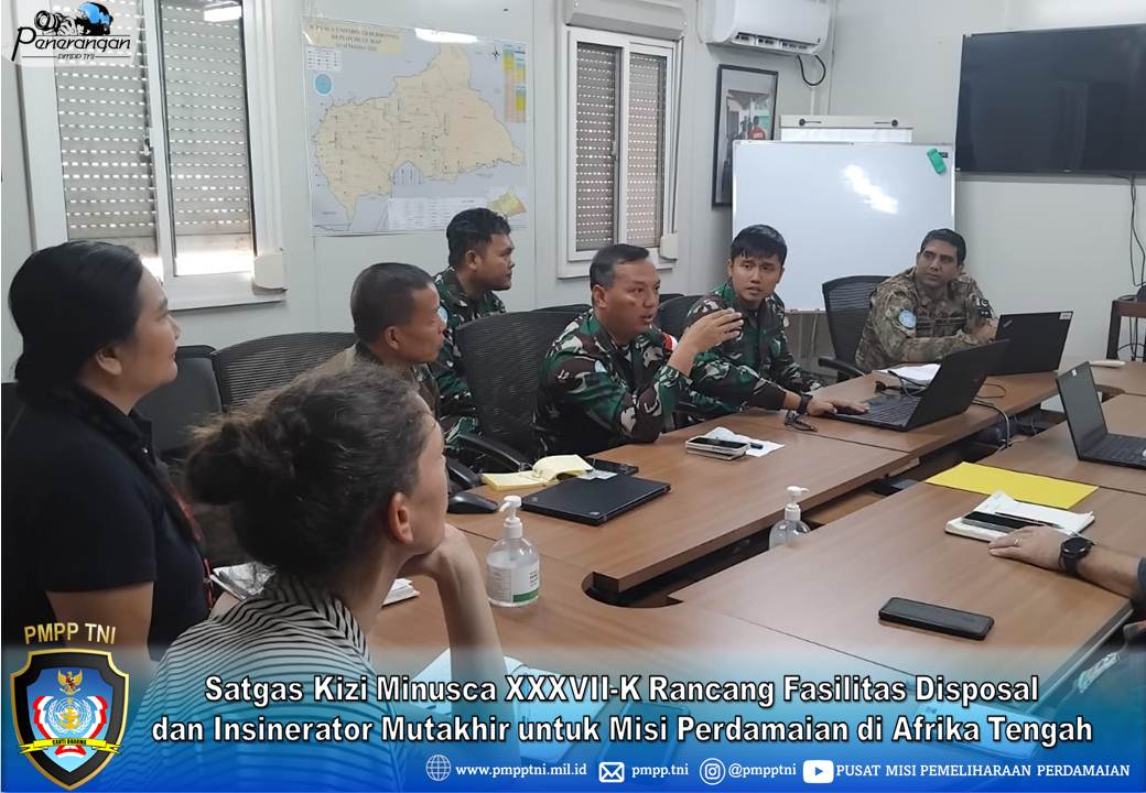 Bangui, Afrika Tengah – Satuan Tugas Kompi Zeni (Satgas Kizi) TNI Kontingen Garuda XXXVII-K MINUSCA menggelar rapat strategis untuk merencanakan pembangunan lahan Disposal Area dan Lapangan Tembak di Ucatex Minusca, Bangui. Proyek vital yang berlokasi di PK 39 (Bangalakédé) ini bertujuan untuk mendukung kebutuhan operasional pasukan perdamaian PBB (Minusca) dan Angkatan Bersenjata Afrika Tengah (FACA). Pengerjaan infrastruktur ini diperkirakan akan memakan waktu selama dua setengah bulan dengan melibatkan sekitar 22 personel ahli dari Kontingen Indonesia. 27/08/2025