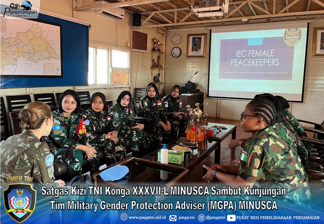 Satuan Tugas Kizi TNI Konga XXXVII-L MINUSCA menerima kedatangan tamu terhormat dari Tim Military Gender Protection Adviser (MGPA) MINUSCA, yakni Letnan Kolonel Priscilla dan Mayor Fuajemi, selaku Penasihat Militer Bidang Gender dan Perlindungan (MGPA) MINUSCA.