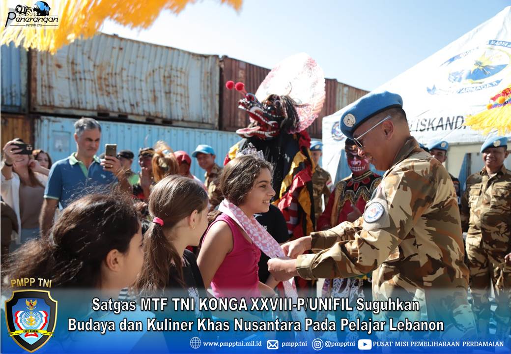 Lebanon, 30 Oktober 2025,—- Satgas MTF TNI Konga XXVIII-P/UNIFIL dalam hal ini KRI Sultan Iskandar Muda-367 (KRI SIM-367) yang tengah bersandar di Dermaga no.4, Beirut, Lebanon pada Kamis (30/10) menyuguhkan berbagai penampilan budaya dan kuliner khas Indonesia kepada sejumlah pelajar Lebanon dari Yayasan Alyarz Benevolent Beirut.