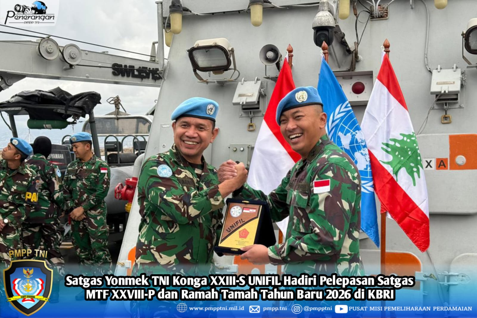 Mewakili Komandan Kontingen Garuda TNI UNIFIL, Deputy Contingent Commander (DCO) Sector East UNIFIL, Kolonel Infanteri Dr. Akhmad Juni Toa, M.I.Pol., S.E., menghadiri acara pelepasan Satuan Tugas Maritime Task Force (Satgas MTF) XXVIII-P yang telah menyelesaikan pelaksanaan misi perdamaian di bawah mandat United Nations Interim Force in Lebanon (UNIFIL).