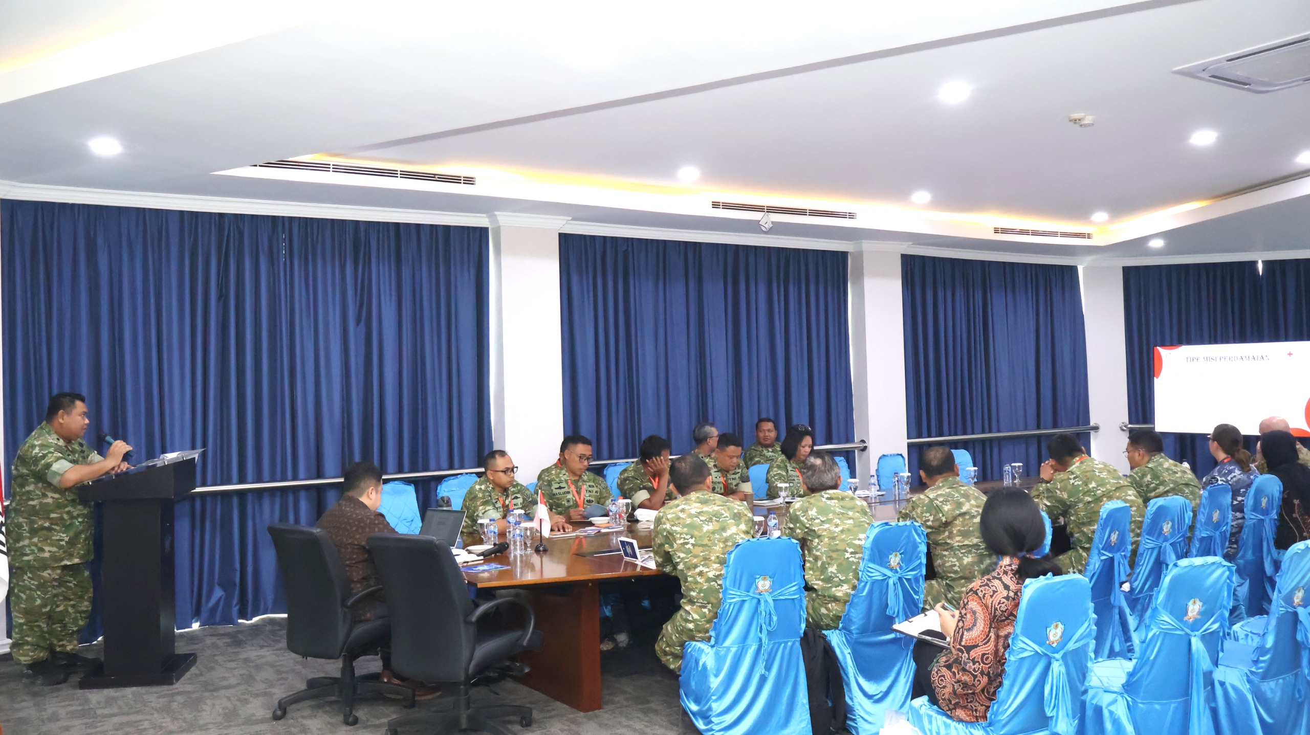 Workshop menghadirkan narasumber dari ICRC Bpk. Christian Donny Putranto selaku Wakil Kepala Delegasi Regional ICRC untuk Indonesia dan Timor-Leste bersama Staf Hukum PMPP TNI, serta dihadiri pejabat utama PMPP TNI, manajer program ICRC, perwakilan Babinkum TNI, serta para instruktur dan pelatih PMPP TNI.
